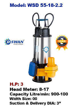 DRAINAGE SUBMERSIBLE  PUMP, 220V, 50Hz, 2900 RPM, 15M CABLE